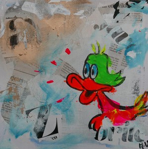 2020Streetart eend op board, mixed media