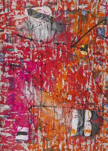 2020Op oud krantenpapier geschilderd met acryl verf. Randen zijn niet recht. op de achterkant is een abstracte afbeelding geschilderd. op deze manier is het schilderij op twee manieren op te hangen. gesigneerd door kunstenaar.