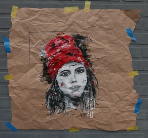 streetart portret vrouw on canvasboard